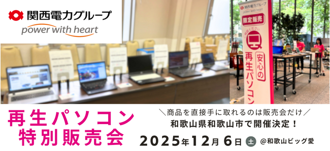 株式会社ポンデテック(関西電力グループ)が運営するPC nextは、2025年12月に和歌山県和歌山市で「再生パソコン特別販売会」を開催します。