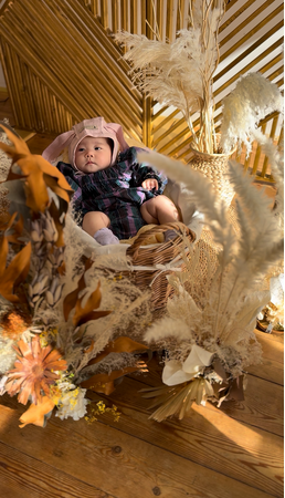 スタジオには、赤ちゃんから小学生の子どもまで幅広い家族が参加。撮影セットには暖色の光と季節のドライフラワーが飾られ、まるで映画のワンシーンのような温かい世界観が広がりました。