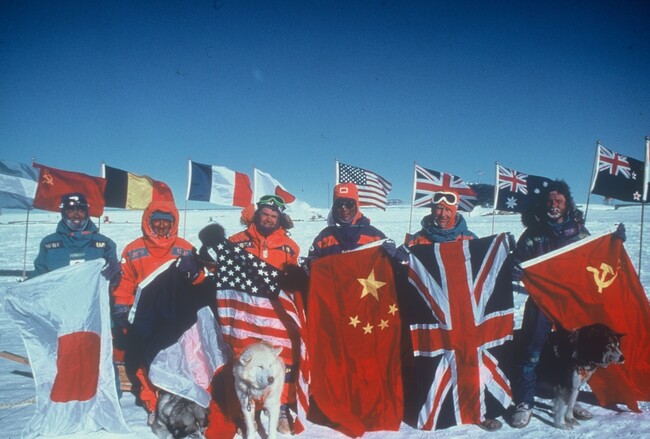 1990年、 世界6カ国で編成された国際隊が、犬ぞりによる初の南極大陸横断に成功しました。1989年7月にスタートし、12月11日に南極点到達。翌年3月に約6,040kmを踏破し、無事全員がゴールしました。