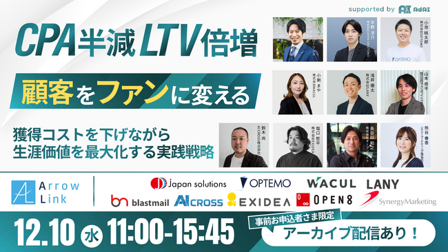 2025年12月10日開催のセミナー「CPA半減、LTV倍増の法則~顧客を"ファン"に変える。獲得コストを下げながら生涯価値を最大化する実践戦略~」にWACULが登壇します。