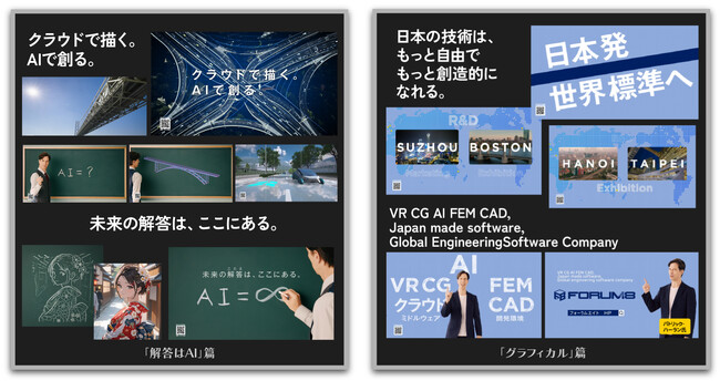 新CMラインナップ:左「解答はAI」篇/右「グラフィカル」篇