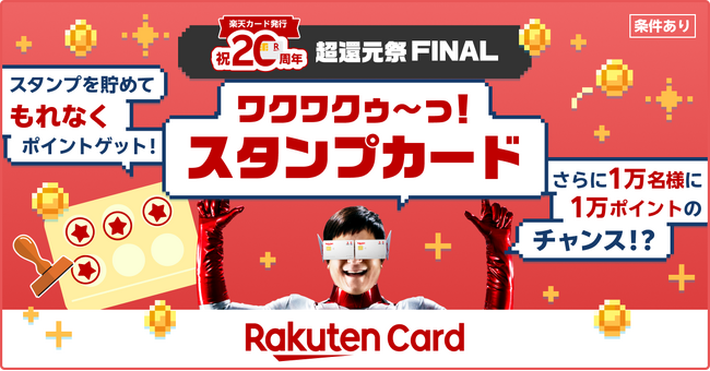 楽天カード株式会社(以下「当社」)は、2025年7月で「楽天カード」の発行から20周年を迎えたことを記念した「超還元祭」の第3弾キャンペーンとして、「超還元祭FINAL!スタンプカードでポイントGET!」を2025年12月1日(月)から開催します。