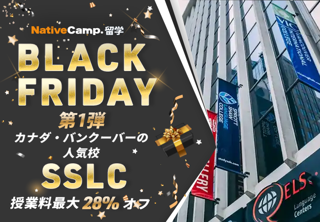 【ネイティブキャンプ留学】BLACK FRIDAY第1弾 - カナダ留学(SSLC)授業料最大28%オフ
