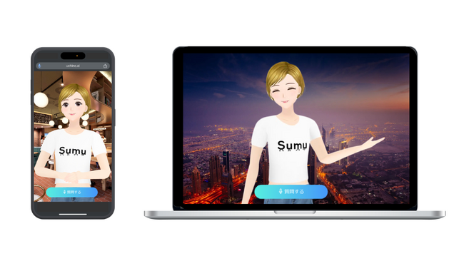 本サービスで採用している「Niiva Talk」は、アニメ調で親しみやすいデザインと、会話内容に応じて自然に動く3Dアバターによる対話体験を特徴としています。表情やジェスチャーを伴うインタラクションにより、Webサイト上でも“人に近い”コミュニケーションを実現し、企業のブランドイメージを温かく、印象的に伝えることができます。当社では、新しいアパートメントホテルブランド「Sumu」のTシャツを着用したAIアバター「カソク旅子」を制作し、自然な音声・テキストでの対話を通じて、当社や事業内容について分かりやすくご案内します。