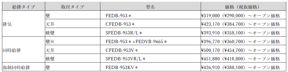 壁面取付タイプ 天井取付タイプ 横壁取付タイプ