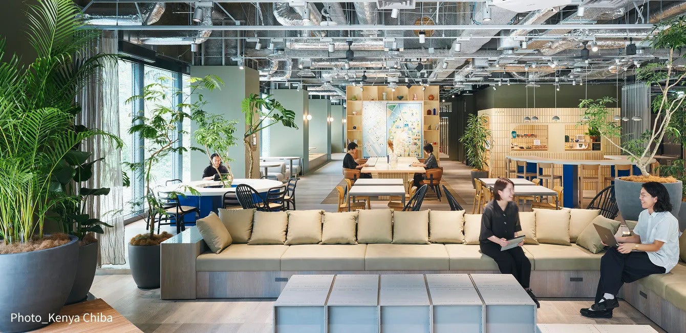 担当エリアはTOYONOMA内「HIBINOMA」の入口に当たる受付スペース。HIBINOMAは、働く人も暮らす人も、ファミリーから学生まで、オン・オフを問わず1時間から利用できる、“まちに開かれた”多機能エリアとして設計されています。