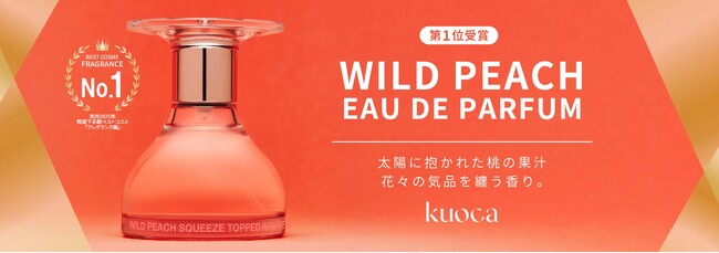 kuocaのスキンケアラインのリピーターには、アイテムの香りのファンも多くいます。香水発売のリクエストが増え、ブランド初となる香水が登場しました。2025年10月に開催された「サロン ド パルファン 2025」を皮切りに満を持して日本でローンチ。中でも、今回受賞したWILD PEACHは、韓国でも人気の香りで発売から完売をくり返しています。日本上陸後、SNS上で「まるで本物の桃」や「桃を手で握りつぶした香り」と表現され、瑞々しい香りが話題に。今回の受賞で益々注目を集めています。[画像2: https://prcdn.freetls.fastly.net/release_image/79227/49/79227-49-10a0b8d339fc81e7e88c31095a1feaf5-1667x2500.png?width=536&quality=85%2C75&format=jpeg&auto=webp&fit=bounds&bg-color=fff ]
