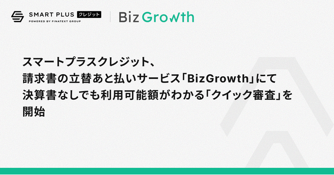 スマートプラスクレジット、請求書の立替あと払いサービス「BizGrowth」にて決算書なしでも利用可能額がわかる「クイック審査」を開始