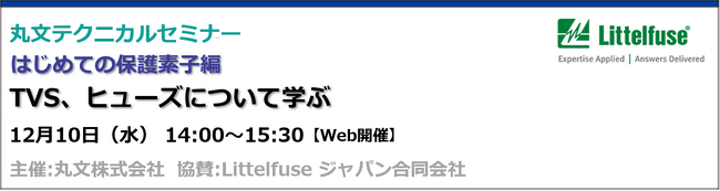 【無料 12/10(水)】丸文テクニカルセミナー「はじめての保護素子編 TVS、ヒューズについて学ぶ」を開催