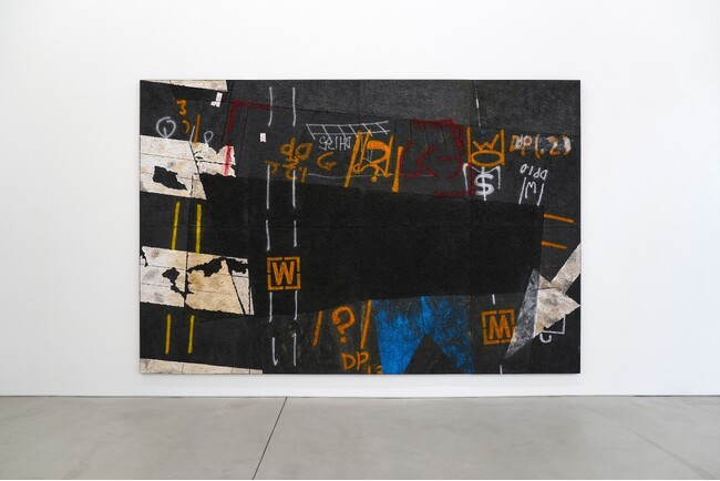 過去作品《Asphalt and Wooded Landscape》2022Asphalt, MDF, UV print, FRP, thermoplastic road marking tape, aluminum frame168.6cm x 206.7cm x 4.0cm