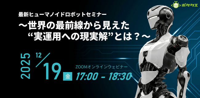 株式会社ポケット・クエリーズ(本社:東京都新宿区、代表取締役:佐々木宣彦、以下「当社」)は、2025年12月19日(金)に、建設・インフラ・製造業などの現場向けに、世界のヒューマノイドロボット最新動向と導入のポイントを解説するオンラインセミナーを開催いたします。