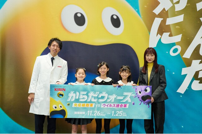 キリンホールディングス株式会社(社長 COO 南方健志 以下キリン)は、”免疫”の仕組みを親子で楽しく学べる体験型イベント「からだウォーズ」を日本科学未来館にて2025年11月26日(水)から2026年1月25日(日)に開催します。また、開催に先立ち、11月25日(火)にオープニングイベントを行いました。