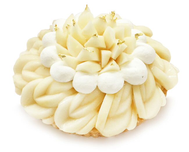 芳醇な香りでとろけるようになめらかな食感の新潟県 三条市 渡辺果樹園産 洋梨「ル レクチエ」を使用し、新潟県 魚沼産のコシヒカリを使用した甘酒をあわせたクリームと共にマスカルポーネのベースに飾りました。新潟県の恵みを存分にお楽しみ頂けるケーキです。