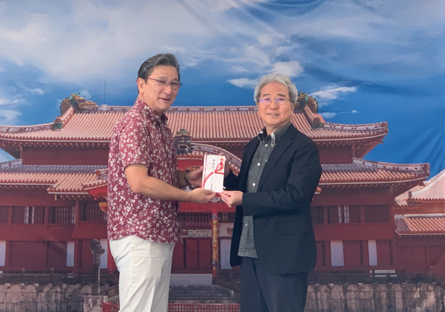 写真左)ノボテル沖縄那覇 坂本公敏 総支配人 写真右) 一般社団法人 沖縄美ら島財団 理事長 湧川盛順様