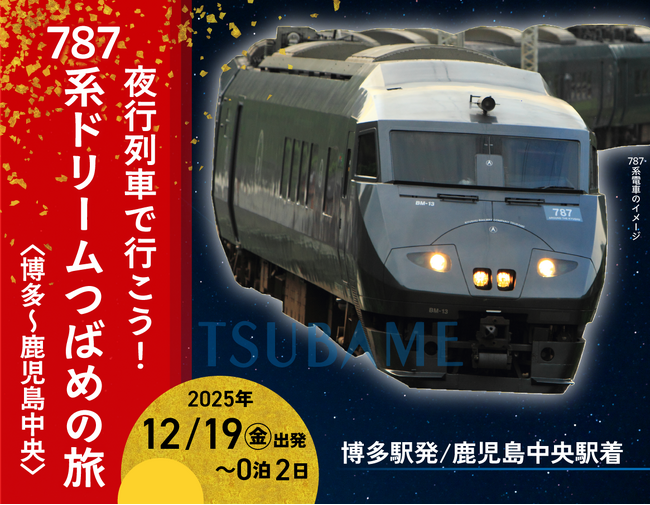 九州旅客鉄道株式会社では、787系電車6両編成を使用して「夜行列車で行こう!787系ドリームつばめの旅《博多~鹿児島中央》《鹿児島中央~博多》」を発売しています。