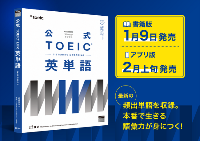 日本でTOEIC Programを実施・運営する国際ビジネスコミュニケーション協会(IIBC)(所在地:東京都中野区中野、理事長:藤沢 裕厚)は、TOEIC Listening & Reading Testの最新頻出単語1,800語を掲載した『公式TOEIC Listening & Reading 英単語』の書籍版を2026年1月9日(金)に、アプリ版を2026年2月上旬に発売します。書籍版・アプリ版それぞれに独自の特長があるため、両方を組み合わせることでより効果的に学習することができます。アプリ版は、TOEIC公式教材アプリ内で購入できます。