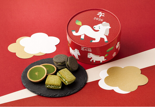 茶の香り漂う古都鎌倉うまれの菓子屋「鎌倉五郎本店」と天保七年創業茶舗・矢野園が出会い、創意工夫に満ちた抹茶スイーツが大人気な「KAMAKURA 茶の福」。そんなお抹茶スイーツ専門店から、お正月のギフトにぴったりな『午年福箱』が新登場!2026年の干支は「午」。福を運ぶ「午」がデザインされたおめでたい福箱で、幸せいっぱいの新年を迎えられますように。