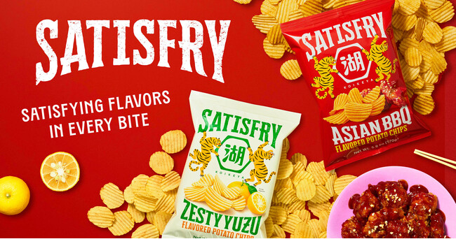 子会社の設立を起点に、北米での事業展開を拡大していくにあたり、“モダンアジア”をエキサイティングな世界観で表現したポテトチップス「SATISFRY ASIAN BBQ」、「SATISFRY ZESTY YUZU」の2品を新たに開発し、2025年11月中旬より米国にて順次販売開始します。