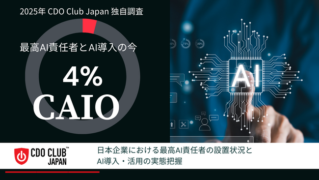 グローバルで DXに取り組む経営執行職である CDO(最高デジタル・データ責任者)ならびにCAIO(最高AI責任者)のコミュニティを運営する CDO Club Japan は日本国内でのCAIOの設置状況ならびにDXにおけるAI関連の状況を把握するために、CDO Club Japanの会員ならびに一般の上場企業を対象に「日本企業における最高AI責任者の設置状況とAI導入・活用の実態把握」に関する調査を実施しました。