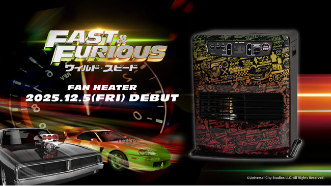 石油暖房器具メーカーの株式会社トヨトミ(本社:愛知県名古屋市)は、大人気映画「FAST&FURIOUS」との特別コラボを実現!日本では「ワイルド・スピード」の名称で知られている「FAST&FURIOUS」は2026年に映画公開25周年を迎えます。これを記念して、トヨトミから「FAST&FURIOUS」特別デザインの石油ファンヒーター「LC-33FF」を2025年12月5日(金)より販売を開始します。