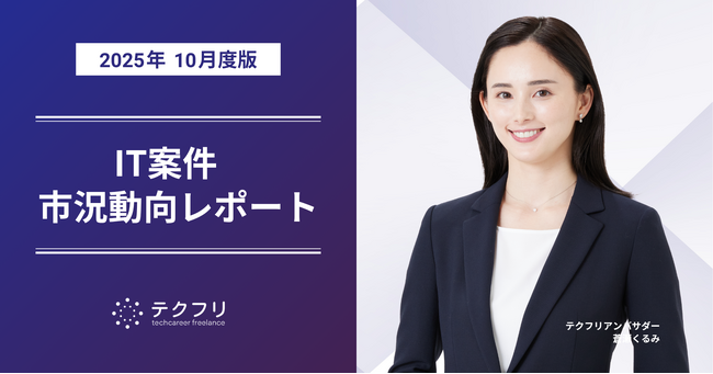 ITフリーランスエンジニアの案件・求人サイト「テクフリ」(https://freelance.techcareer.jp/)を運営する株式会社アイデンティティー(東京都港区、代表取締役:今野 力、以下「当社」)は、テクフリのデータベースをもとに2025年10月における案件の市況感を調査しました。より詳しい結果については、お問い合わせから資料請求が可能です。