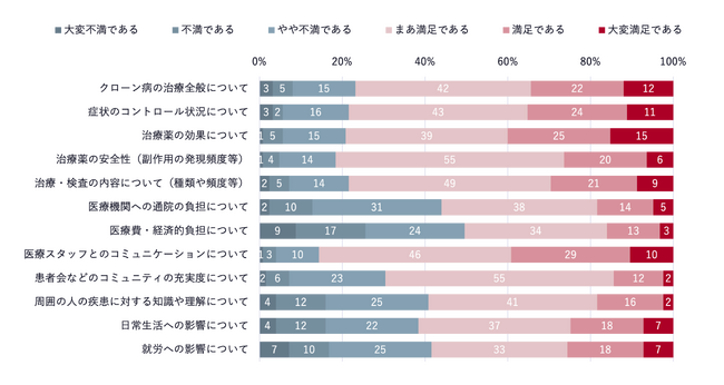 患者調査:クローン病の診療や日常生活への影響についての満足度を教えてください。