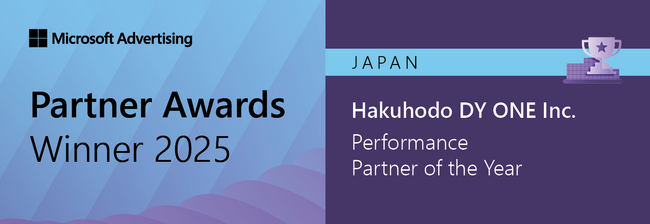 株式会社Hakuhodo DY ONE(本社:東京都港区、代表取締役会長:田中雄三 代表取締役社長:小坂洋人、以下 Hakuhodo DY ONE)は、日本マイクロソフト株式会社が主催する「Microsoft 広告 Partner Awards 2025」において、「パフォーマンス・パートナー・オブ・ザ・イヤー」を受賞しましたのでお知らせいたします。