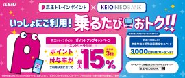 京王NEOBANK口座保有者限定!電車に乗って最大15%分の京王トレインポイントが貯まる「京王トレインポイント ポイントアップキャンペーン」を12月1日(月)から開始!