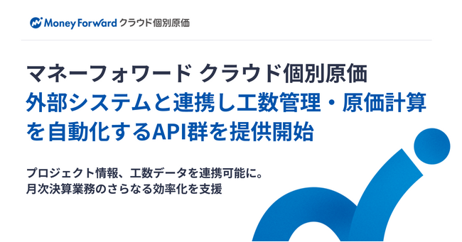 『マネーフォワード クラウド個別原価』、外部システムと連携し工数管理・原価計算を自動化するAPI群を提供開始