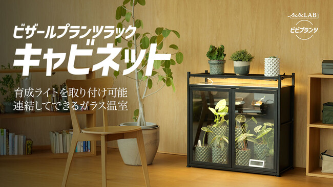 弊社趣味グッズブランド「BIBILABR(ビビラボ)」は2025年月、観葉植物との暮らしを快適にサポートする【ビビプランツ】シリーズから、植物ラックとしての機能性&家具としてのインテリア性を両立するガラス温室「ビザールプランツラック キャビネット LPR-800G」を発売いたします。