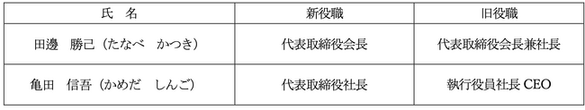 また、田邊勝己については、2025 年5月 27 日に、定時株主総会をもって代表取締役を退任する旨の開示をしておりましたが、5月 27 日からの時価総額の大幅な下落による不安定状況について引き続き代表権を保持して経営を安定させるべきとの会社内での意見が多数をしめたこと、5月 27 日に開示して予定していた前代表取締役社長の経営アドバイザー就任の辞退、諮問委員会で指名した CEO 補佐の早期辞任を受けて、新代表取締役を補佐する意味でも経験豊富な代表者としてとどまるべきとの意見が多数を占めたこと、大株主として会社の資金繰りへの保証を監査法人から前期、前々期に求められて来たことによる会社経営の安定への責任を引き続き果たすべきであるとの意見が多数を占めたこと、本日の株主総会で 88%の圧倒的多数で株主から信任をうけたこと、などの会社内で討議を尽くし、取締役会長を希望する田邊氏を説得した結果、田邊氏には引き続き代表取締役会長として経営責任を負って頂くことが最も適切だと判断したものです。