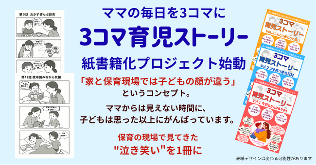 『3コマ育児ストーリー』紙書籍化プロジェクト始動――電子書籍として配信中の『3コマシリーズ』が、保育者視点のエッセイとコラムを加えた紙書籍版として制作スタート。