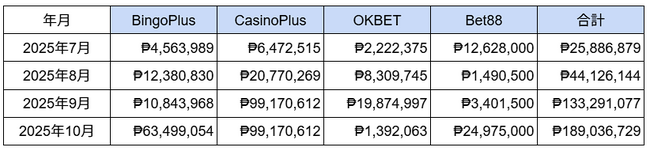 出典元:[Oct 2025] Report on Big Wins in Philippine Casinos - Jackpot Hits Reach ₱189,03 Million