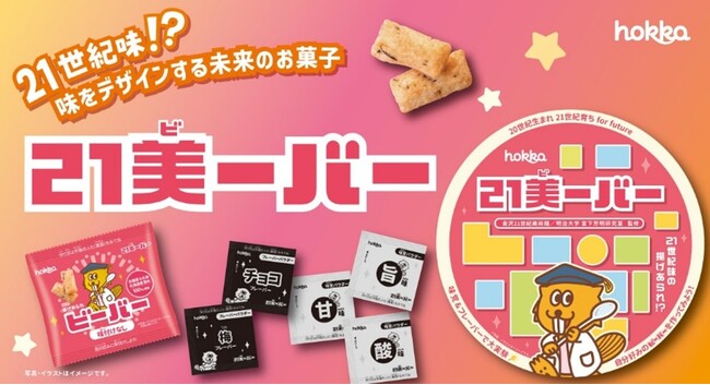 「21美ーバー」は、食べる人自身が「味をデザインする」という新しい体験を提供する、“アート×サイエンス×フード”の融合から生まれた実験的お菓子です。ビーバー本体に、甘味・酸味・旨味などの味覚パウダーと、香りや風味を変化させるフレーバーパウダーがセットになっており、組み合わせ次第で食べるたびに異なる味を楽しめます。