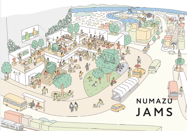 名称に込めた想い拠点名称は「NUMAZU JAMS(ヌマヅ ジャムズ)」に決定しました。「JAMS」は、「Jam Session(ジャム・セッション)」に由来しています。「楽譜にとらわれない即興的な演奏」が持つイメージに、「多様な人々が集い、まちの賑わいをみんなで一緒に創り上げていく(みんなでまちを奏でる)」という、施設コンセプト「湊(みなと)」の願いを重ねました。