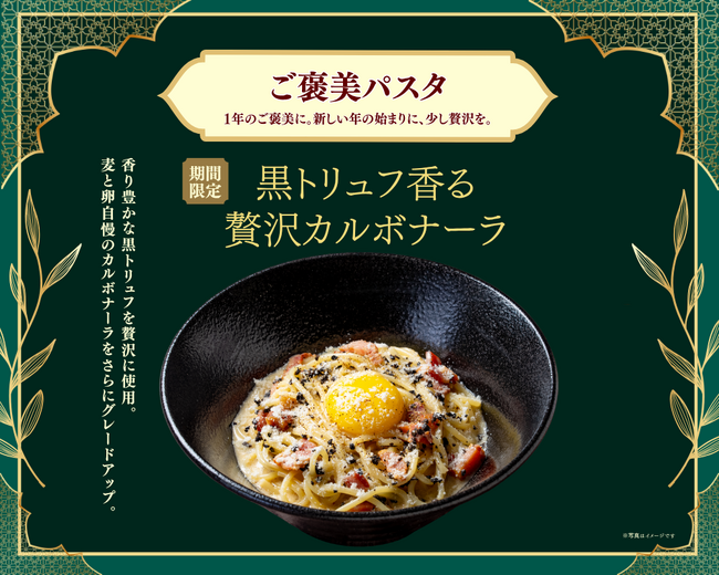 黒トリュフの豊かな香りと、専門店ならではの北海道生パスタのもちもち食感が織りなす、冬だけの特別なカルボナーラです。ひと口食べた瞬間にふわっと広がる香りと、濃厚でコク深いソースの余韻が続く仕上がりで、外食での“プチ贅沢”を体感いただけます。■黒トリュフの香りを引き立てる特製ソース