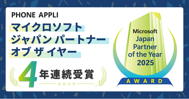 PHONE APPLI、「マイクロソフト ジャパン パートナー オブ ザ イヤー」4年連続受賞
