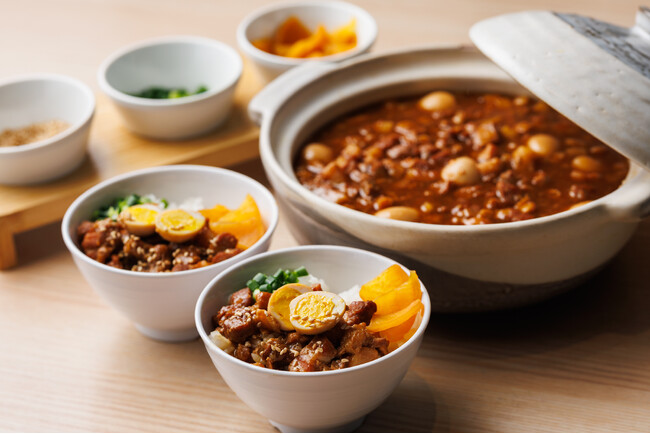 白米の上に具材と煮汁をたっぷりかけて本格的な台湾の味を再現。