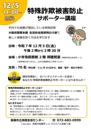 特殊詐欺被害防止サポーター講座(高槻市ホームページ)