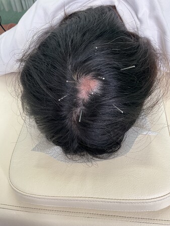 頭皮鍼とは、頭皮に鍼施術を施すことにより、自律神経や頭皮のむくみが改善され、抜け毛の予防や発毛の促進を図る施術法です。1回の施術時間は短めですが定期的に施術を受けて頂く事で効果を高めていくことが期待できます。現在,約12名の方が週1~2のペースで施術させてもらっています。