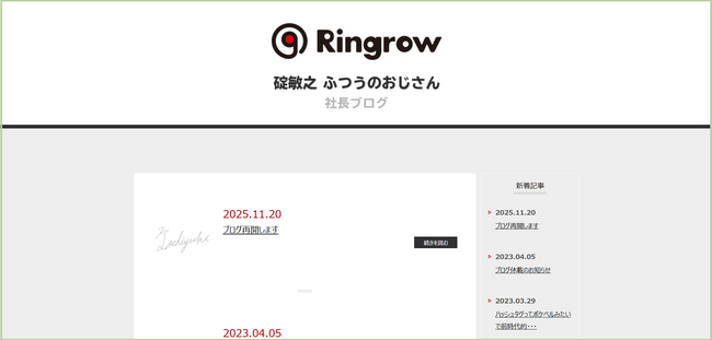 「碇敏之 ふつうのおじさん 社長ブログ」https://www.ringrow.co.jp/president/