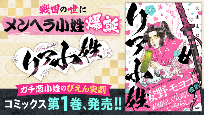 『リア小姓』は、武将に仕える小姓・暁式が、主君にガチ恋するリア「コ」姓となり、寵愛を勝ち取るために奮闘する“戦国時代×リアコ”の新感覚漫画です。「推し」「メンヘラ」「リアコ」といった現代的な価値観で表現される独創的なストーリーが魅力の作品です。