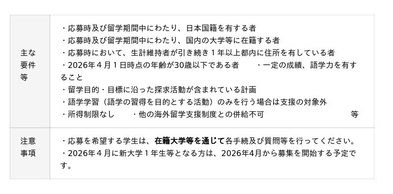 ※応募期限は在籍大学等から事務局への提出期限となります。在籍大学等によっては、学内で事前の締切日が設定される場合があるため、早めに在籍大学等に相談をしてください。