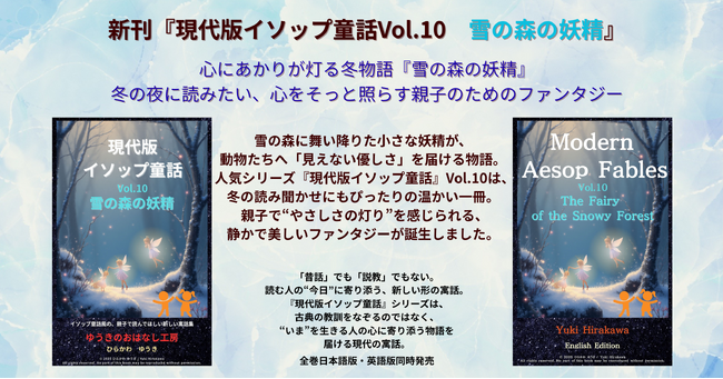 ひらかわゆうきの人気シリーズ『現代版イソップ童話』に、冬の新作 Vol.10『雪の森の妖精』が登場しました。親子で“やさしさの灯り”を感じられる、静かで美しいファンタジーです。