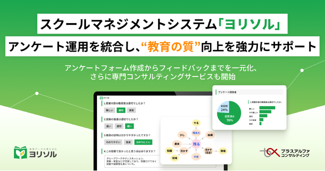 株式会社プラスアルファ・コンサルティング(本社:東京都港区、代表取締役社長:三室 克哉、証券コード:4071)は、スクールマネジメントシステム「ヨリソル」において、アンケートの作成、収集、集計、フィードバックまでの一連の運用フローを1つのツールで完結できるよう機能の拡充を図りました。