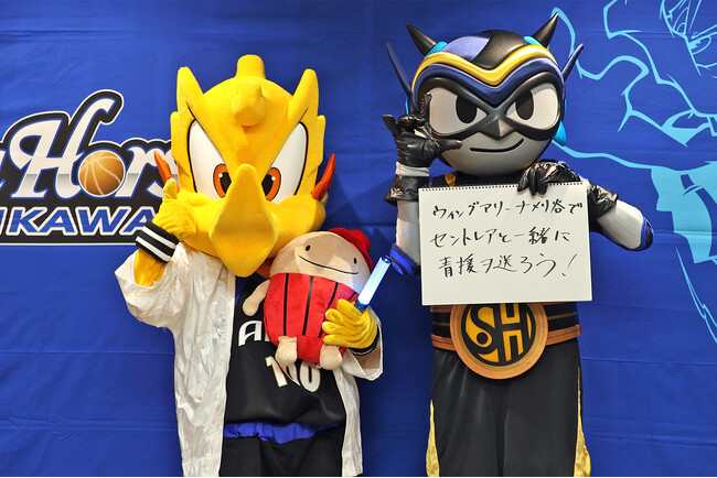シーホース三河マスコット「シーホースくん」(左)と所属タレント「タツヲ」(右)