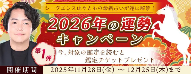 2026年あなたの運勢|霊視芸人シークエンスはやともが視抜く、総合運・仕事運・金運。公式占いサイトにて「2026年の運勢キャンペーン第一弾」公開中