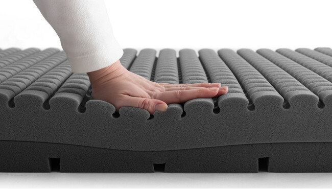 本製品に採用しているウレタン「3Dフォーム」は、カット幅と深さにもこだわり、身体への負荷を抑える構造を実現しました。
