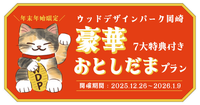 ウッドデザインパーク岡崎(所在地:愛知県岡崎市鍛埜町日面8-4)では、2025年12月26日(金)~2026年1月9日(金)の期間限定で、豪華7大特典が付いてくる「おとしだまプラン」を開始いたします。