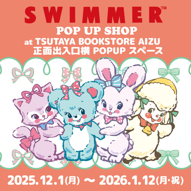 アイピーフォー株式会社(本社:東京都豊島区、代表取締役社長:小濱 剛)がライセンスを取り扱っている大人気雑貨ブランド「SWIMMER」は、2025年12月1日(月)~2026年1月12日(月)までTSUTAYA BOOKSTORE AIZUでPOP UP SHOPを開催!